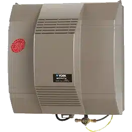 The YORK® Affinity™ Series Whole-house Fan-powered Humidifier improves comfort by restoring optimal humidity levels in the air while reducing the conditions for mold, bacteria and virus growth. The humidifier easily integrates with your existing HVAC system. A built-in fan moves warm air across the water panel and transfers humidity into the air using natural evaporation, providing up to 18 gallons of moisture per day. Optional automatic humidifier controls feature monitor and automatically adjust humidity set points based on inside relative humidity levels.